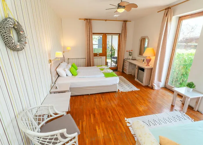 Featuring a terrace and a private swimming pool, the 4-star Belysium B&B Wine&Relax Vendeghaz Gyenesdias lies around a 10-minute drive from the Balaton Museum. Overlooking garden, this Gyenesdias guest house welcomes guests with a daily buffet breakfast.